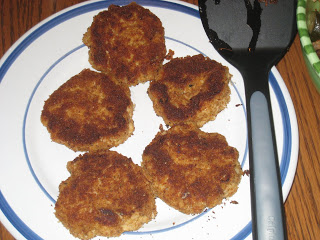 Last night I tried a new Food Network recipe. It’s from the new show $10 Dinners. I want us to eat fish more often, and this sounded like an easy way to do it. And a way to get Justin to eat salmon! I’ve never had canned salmon before, but it was pretty good. And the salmon cakes were very good. We both liked them. Rebecca wasn’t too sure, but I bet she’ll like them more if she tries them a few times. Plus she had one of her favorites (cauliflower) on her plate…so the salmon couldn’t compete 🙂