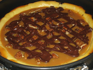 I am in charge of dessert for my extended family Christmas party this year. One of the things I decided to make is turtle cheesecake. I LOVE cheesecake (chocolate covered is my favorite). This is a recipe I got from a Philadelphia cream cheese box years ago. I’ve made it once before for a work Christmas party for Justin. Let’s just say I don’t think any other dessert was even touched before this was gone 🙂 That’s how good it is. Oreos, cream cheese, caramel, pecans…mmmm. It’s in the oven right now. I’ll add pics later when it’s done.