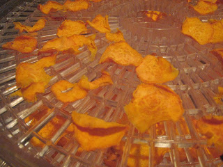 I’ve been wanting to make some healthier non-sweet snacks. And continue to increase my veggie intake. So I decided to start experimenting with veggie chips. So far I’ve only tried making them in my dehydrator. I made zucchini chips earlier this week (which I forgot to take a picture of). They turned out well. Yesterday I made sweet potato chips. Those are really good too! And both are raw, so they still have most of their nutrients. I’m still experimenting and want to try other veggies too. I had some boughten carrot chips recently that I love, so I want to try that for sure. For the zucchini chips I didn’t add anything besides sea salt. For the sweet potato chips I added a little olive oil. I think that worked well. My only issue is figuring out how to keep them crisp. They are crisp right out of the dehydrator, but then they get a little soft. So I’ll have to keep experimenting. And try other ways of making them. I want to try cooking them in coconut oil or palm shortening. I’m excited to have these to take on our trip. A tastey, healthy treat!